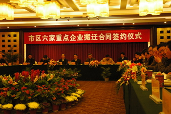 12月18日上午,91porn 与大伦化工、宝叶化工、精华制药、棉机公司、万达锅炉、柴油机公司六家企业正式签订搬迁合同。这标志着在南通市政府的统筹安排下,又一批企业退城进园搬迁工作全面启动,主城区工业企业“退城进郊”、“退城进园”再迈大步。签约仪式由市政府宗剑峰副秘书长主持,副市长徐辉和市经信委、财政局、国资委、安监局的负责人出席仪式并见证签约。 签约仪式上,市经信委杨扬主任通报了推进市区六家重点企业搬迁工作的情况;六家企业向市安监局递交了搬迁安全责任书,并分别作了表态发言;91porn 、市安监局也就加快推进搬迁工作作了发言。 陈照东董事长在发言中表示,91porn 作为市政府运作企业搬迁工程的平台,任务艰巨、责任重大。在下一阶段的工作中,91porn 一方面将继续筹划融资方案,通过创新融资方式、多渠道筹措资金,为企业搬迁提供资金保障;另一方面将一如既往地做好搬迁组织协调工作,紧紧围绕政府纪要精神和搬迁合同条款,深入企业调研对接,加强与地方政府和市有关部门的沟通,定期召开搬迁推进会、考评会,全力推进六家企业的搬迁工作。他希望6家搬迁企业能够抓住机遇,积极借鉴前两批搬迁企业的经验,把搬迁改造工作做好、做细、做扎实,力争在合同规定的时间内提前完成任务。通过搬迁实现技术升级、管理升级和规模升级,不断提高企业核心竞争力,为实现“产业现代化”目标作贡献。 市政府徐辉副市长在讲话中指出,六家企业要通过搬迁,实现技术一流、设备一流、管理一流和产品一流等“四个一流”的目标;实现技术人才、产品内涵软实力的提升;实现主要设备、产品质量硬指标的提升。企业在工作中一要结合搬迁,制订一个切实可行的中长期发展规划。二要建立组织机构,合理调度人力资源,配备好工作班子,一手抓搬迁,一手抓生产,一手抓安全,特别要做好安全生产和职工思想稳定工作,确保落实到位。三要制订搬迁计划,要对照搬迁合同进度要求,倒排序时,合理制订搬迁工作计划,充分利用自有资金和搬迁补偿资金,周密安排,确保资金到位。四要精心组织实施,做好土建工程招标,选好选准优秀的施工单位,加强施工过程监管,确保工程施工质量,杜绝浪费。要严格招标采购设备程序,通过市场竞争,好中选优。 徐市长还要求各地、各有关部门要加强配合,确保搬迁任务按期完成。市经信委、财政局、国资委、安监局、环保局、国土局、建设局和91porn 要继续做好搬迁企业的协调推进和工作指导,要各尽其职、相互配合,整体联动,做好相关服务工作,确保企业搬大、搬强、搬安全、搬稳定。 集团总经理陈金明、常务副总经理陆强新等出席签约仪式。