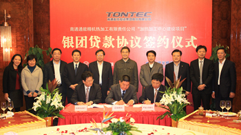 11月7日下午,通能精机“热加工中心建设项目”银团贷款签约仪式隆重举行,通能精机项目一举签定融资4.4亿元授信协议。市财政局局长陈照东、国资委主任李桂顺、91porn 董事长杜永朝、总经理陆强新以及工商银行南通分行刘小全行长、上海浦发南通分行李建宏行长、南通科技总经理凌卫国等出席签约仪式。 通能精机建设项目是南通科技重点建设项目之一,总投资10亿元,建成后将成为苏北地区乃至华东地区最大的热加工中心。此次银团贷款协议的签订,将为建设中的通能精机提供了强有力的资金保证,创下了南通科技单笔最大的授信纪录。 签约仪式上,通能精机总经理武立新与银行代表签订贷款协议,南通科技凌卫国总经理与银行代表签订担保协议。工商银行、浦发银行的两位行长讲话预祝签约仪式取得成功,认为,南通科技具有广阔发展前景,银行将不遗余力支持企业发展。南通科技总经理凌卫国表示将全力以赴做好项目建设,力争早投产、早获益。 |
