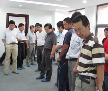 验收会议由国泰公司总经理肖德明主持。装修、空调两家施工单位分别针对各自的施工项目做了专题汇报,监理单位对各工程的质量、安全、工期情况做了介绍。参会人员到装修现场实地进行了检查,对工程验收资料进行了查验,提出改进意见。
