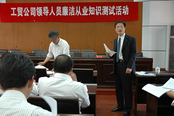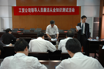 最近一段时期,南通工贸公司党委组织中层以上干部认真学习国资委编发的《国有企业领导人员廉洁从业工作手册》。为检查学习效果,公司纪委于2007518日下午举行工贸公司领导人员廉洁从业知识测试活动,中层以上干部16人参加,均取得较好成绩。