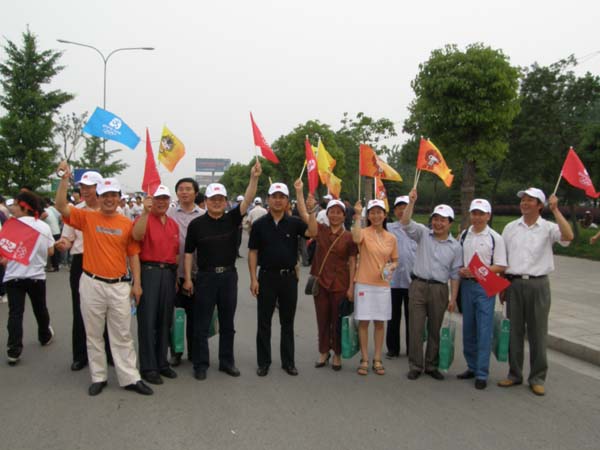 5月25日下午,奥运圣火“祥云”在南通境内传递。公司组织江山股份、南通科技、纺织染等企业组成方阵为火炬传递加油。图为公司本部部分员工以饱满的热情庆祝圣火传递盛事。另悉,在参与传递的104名火炬手中,江山股份职工葛正南光荣当选。