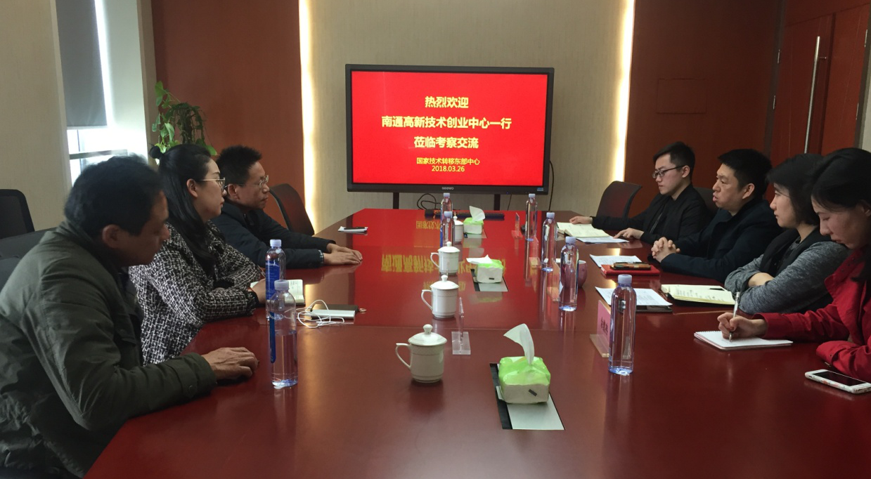近日,南通高新技术创业中心到国家技术转移东部中心开展业务交流,此次交流由南通产业技术研究院副总经理沈峰率队,国家技术转移东部中心副总裁邹叔君、总裁办常务秘书兼合作培训部负责人朱烨进行了热情接待。