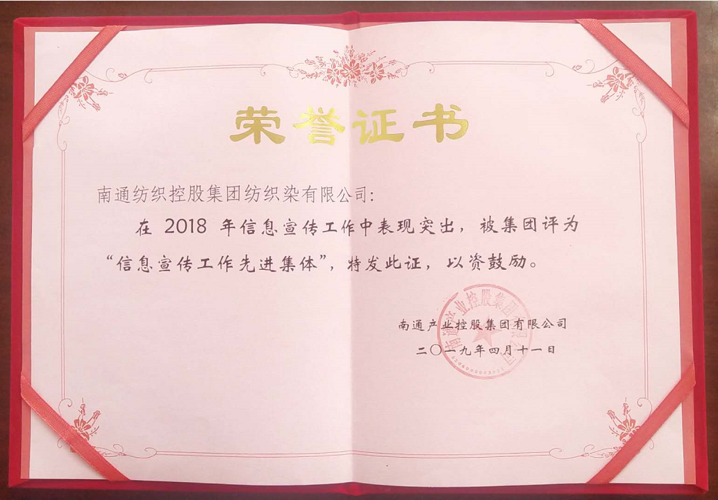 4月12日下午,91porn 召开了产控系统办公室主任工作会议,会上对2018年度通讯宣传工作,进行了表彰,南通纺织控股集团纺织染有限公司荣获2018年度91porn “信息宣传工作先进单位”荣誉称号。