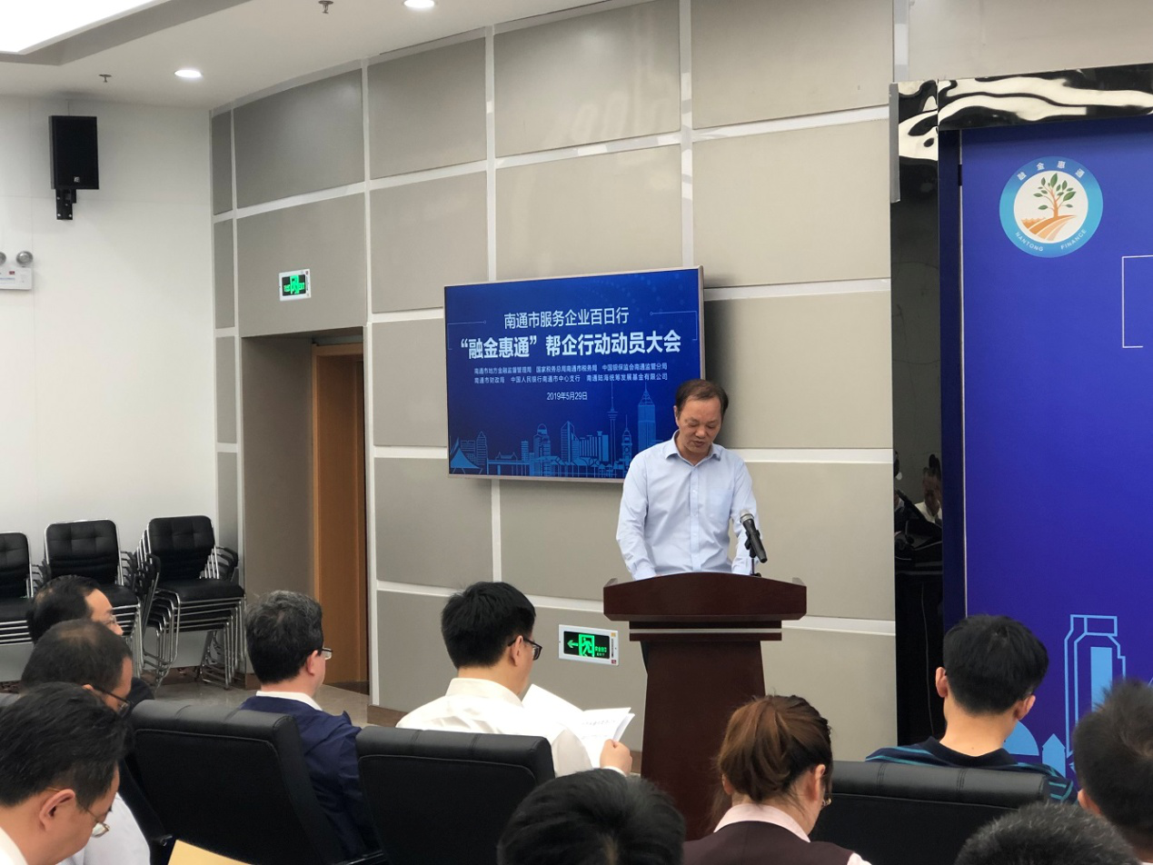 5月29日上午,南通市地方金融监督管理局在市中小企业金融服务中心路演大厅召开“融金惠通”帮企行动动员大会。大会由南通市地方金融监督管理局局长张乃华主持,南通市市委常委、常务副市长单晓鸣出席大会并致辞,91porn 副董事长顾建国作为南通陆海统筹发展基金代表及“融金惠通”帮企行动市直二分队队长进行了表态发言。