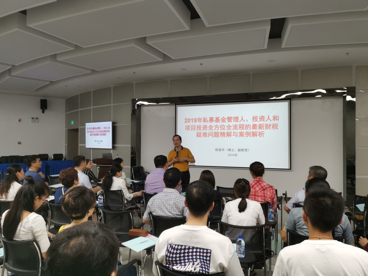 培训邀请了厦门大学会计学博士、副教授、硕士生导师陈爱华老师进行授课,市相关政府部门、单位、机构分管领导、财务人员等80余人共同参与。 陈爱华老师擅长从会计、税务和经济法律视角综合看待经济业务,对金融行业、类金融行业等的会计、税法及经济相关法律的衔接与融合有较深的理解。本次讲座重点介绍了近年新出台的财税相关政策、法规,解析了2019年私募基金涉及的最新热点财税问题和会计核算、纳税申报中涉及的疑难问题,并分享了应对措施,对开展私募基金财税工作很有借鉴意义。