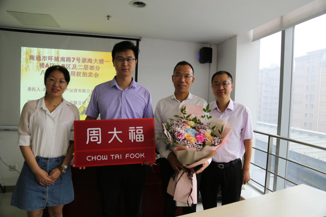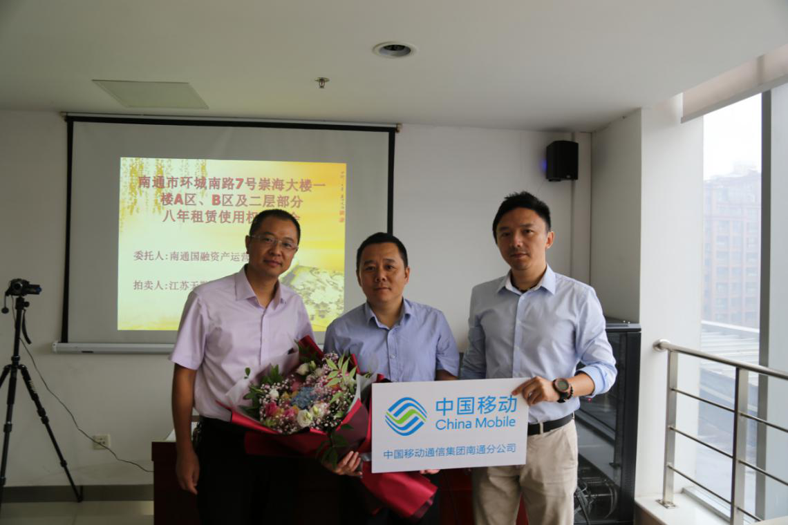 在宣读了房屋租赁使用权拍卖的特别规定等文件并确认各竞租人无异议后,现场监拍人递交了本场拍卖会的底价函。经拍租,中国移动通信集团江苏有限公司南通分公司代理人、张家港保税区佑福珠宝贸易有限公司代理人分别拍中崇海大楼A区八年租赁使用权、B区八年租赁使用权,并签署了成交确认书,成交年租金合计达620万元,八年租金总额达4960万元。公司领导代表公司向房屋竞租人递送了鲜花表达祝贺并合影留念。统一规划,统一布局,统一招租,统一竞租,国融公司充分挖掘崇海大楼优越的商业地段和浓厚的商业氛围优势,转化为优良、持久、高效的经营收益,实现了该处资产科学升值。公司将以崇海大楼成功招租的经验为借鉴,继续做好所管理国有资产的升级改造,切实履行好国有资产保值增值的职责,推动企业的高质量发展。