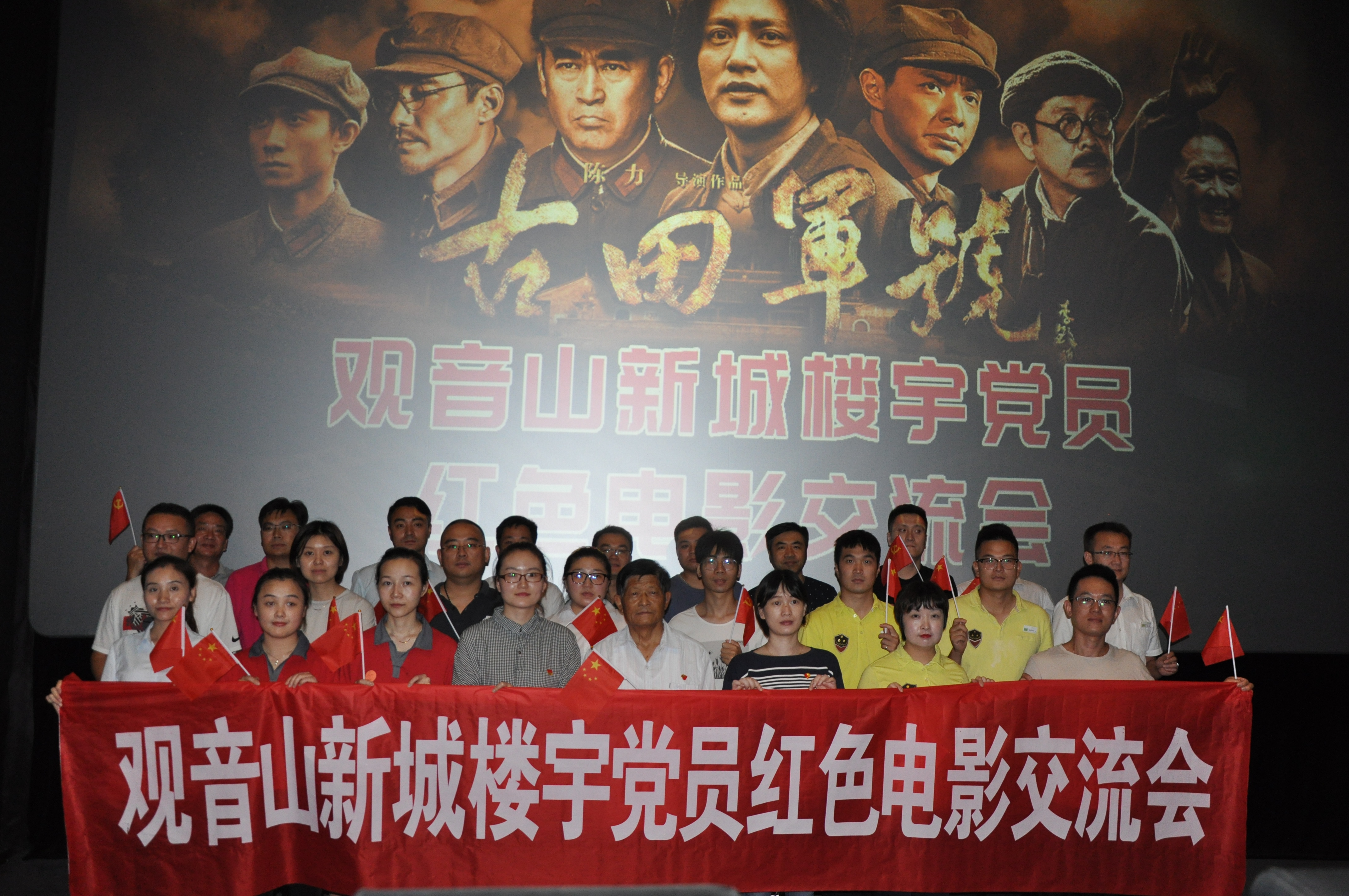 9月3日是中国人民抗日战争暨世界反法西斯战争胜利74周年纪念日。当天中午,南通国城投资发展有限公司党支部、观音山街道山港桥社区等多家单位组成观音山新城楼宇党建课题小组,组织开展了“楼宇党员红色电影交流会”活动,30余名楼宇党员、积极分子、志愿者共同走进影院,观看电影《古田军号》。