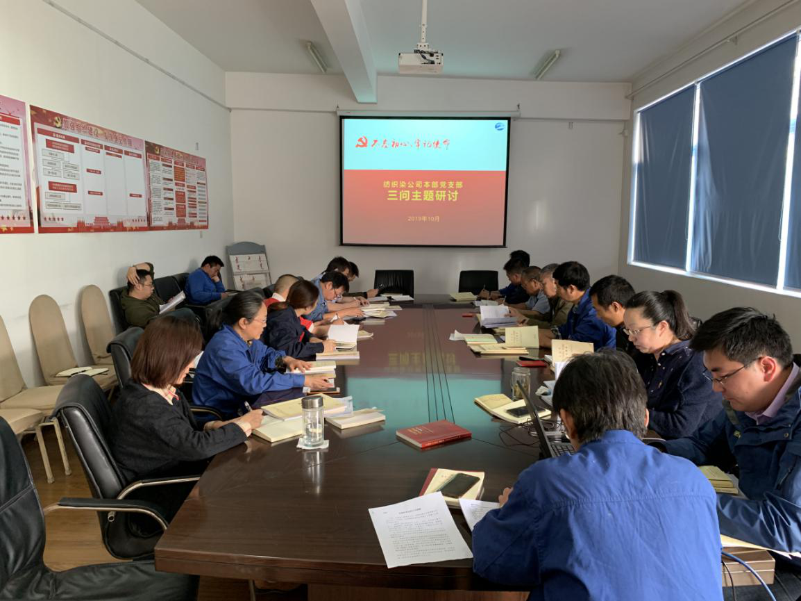 会前,全体党员都认真学习了《习近平新时代中国特色社会主义思想学习纲要》、《习近平关于“不忘初心、牢记使命”论述摘编》和主题教育应知应会100问,对讨论的主题都进行了充分的思考,并精心准备撰写了讨论发言提纲。 会上,每位党员都结合“三问”主题要求,联系自身工作实际,从不同的岗位、不同的年龄、不同的经历、不同的角度出发、分别阐述了“初心是什么、使命干什么、奋斗比什么”。整个专题研讨主题鲜明、讨论深入、意义深刻,气氛热烈。进一步促使全体党员增强了党性观念,铭记了初心使命,凝聚了思想共识,激发了奋斗决心,为更好地开展纺织染公司主题教育和生产经营工作打下了良好的基础。