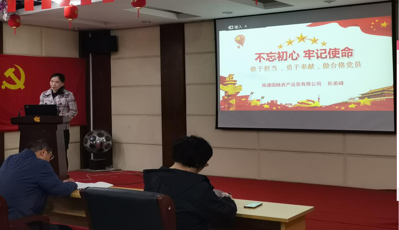 10月24日,南通国融资产运营有限公司党委委员、工会主席孙美峰结合“不忘初心、牢记使命”主题教育给公司全体员工上了一堂题为“敢于担当,勇于奉献,做合格党员”的专题党课。 孙美峰引经据典向大家诠释了什么是担当奉献、共产党员的担当奉献精神、如何敢于担当勇于奉献。