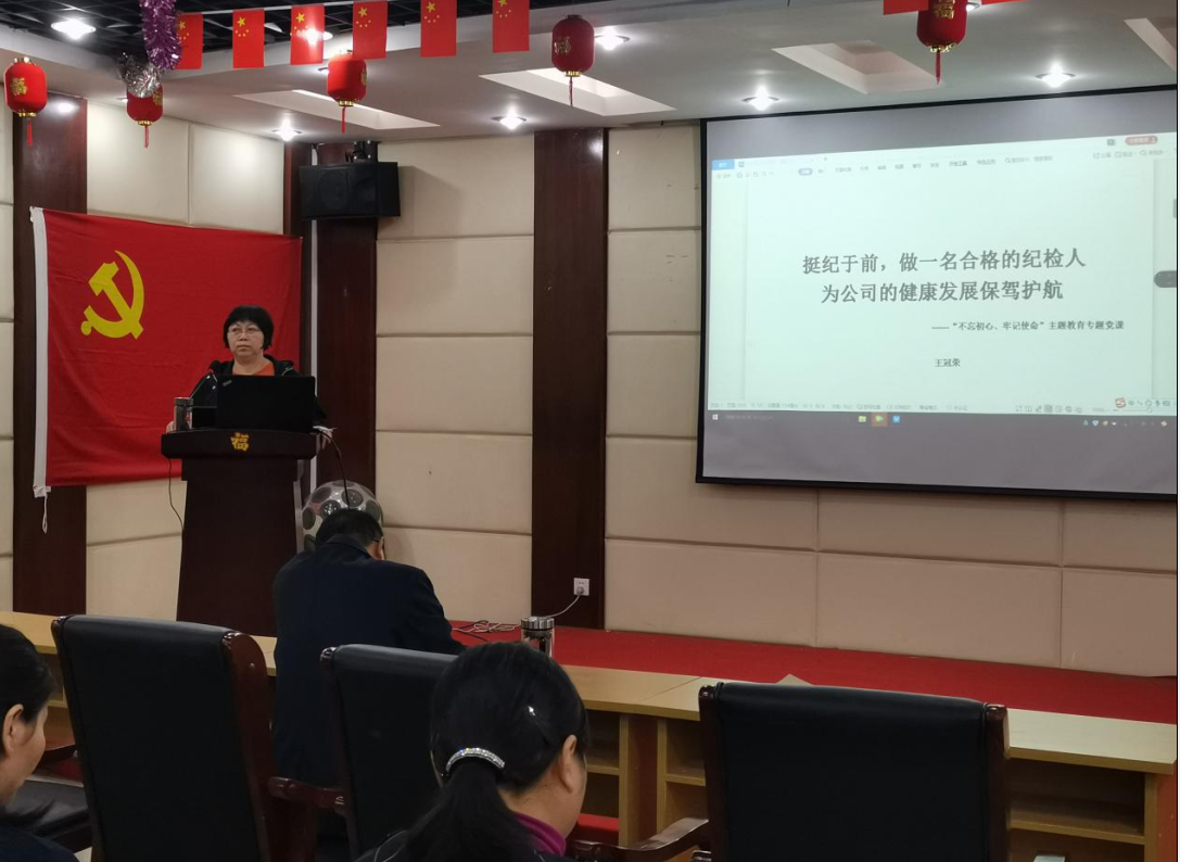 人民对美好生活的向往,就是我们的奋斗目标。课上一幅幅老照片鲜明地展示了在共产党人的领导下,中国这个世界最大的发展中国家在短短四十年里摆脱了贫困并跃升为世界第二大经济体,创造了人类社会历史上惊天动地的发展奇迹,使中华民族焕发新的蓬勃生机,中华民族正以崭新的姿态屹立于世界的东方。 王冠荣结合自己的工作岗位和经历,提出了纪检人的“初心和使命”:挺纪于前、纯洁党的队伍、做党和人民的忠诚卫士。一个个鲜活的腐败案例,一个个催人警醒的反面典型,使每个人都得到心灵上的“洗礼”,从而进一步筑牢岗位廉政“防火墙”。她指出要加强对年轻干部的教育引导,让他们从进入干部队伍就知道守纪律、讲规矩的重要性和严肃性,明白在党内不守纪律、不讲规矩,跟组织玩小聪明,权欲膨胀、利欲熏心,不择手段往上爬,为了自己什么事都敢干,总有一天会自己毁了自己的。 她要求党员干部要勇于担当作为、发挥先锋模范作用,做好“五带头”:带头学习提高、带头争创佳绩、带头服务群众、带头遵纪守法、带头弘扬正气,争做党的“初心和使命”的实践者,为公司的高质量发展贡献自己的一份力量。