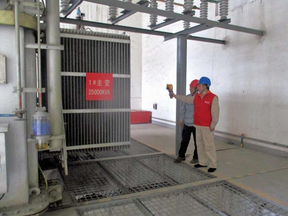培训结束后,热电分厂合理安排工作人员,确定工作负责人和专职监护人,明确各级人员工作内容及职责,带领“通电先锋”服务队人员进入现场。大家兵分三路,对1#主变、2#主变、35KV开关柜、110KVGIS等电气设备进行了红外测温、局放、油色谱分析等带电检测工作,并对全站二次设备进行了状态巡视、采样检查、回路检测等工作,积极排查电气设备隐患。