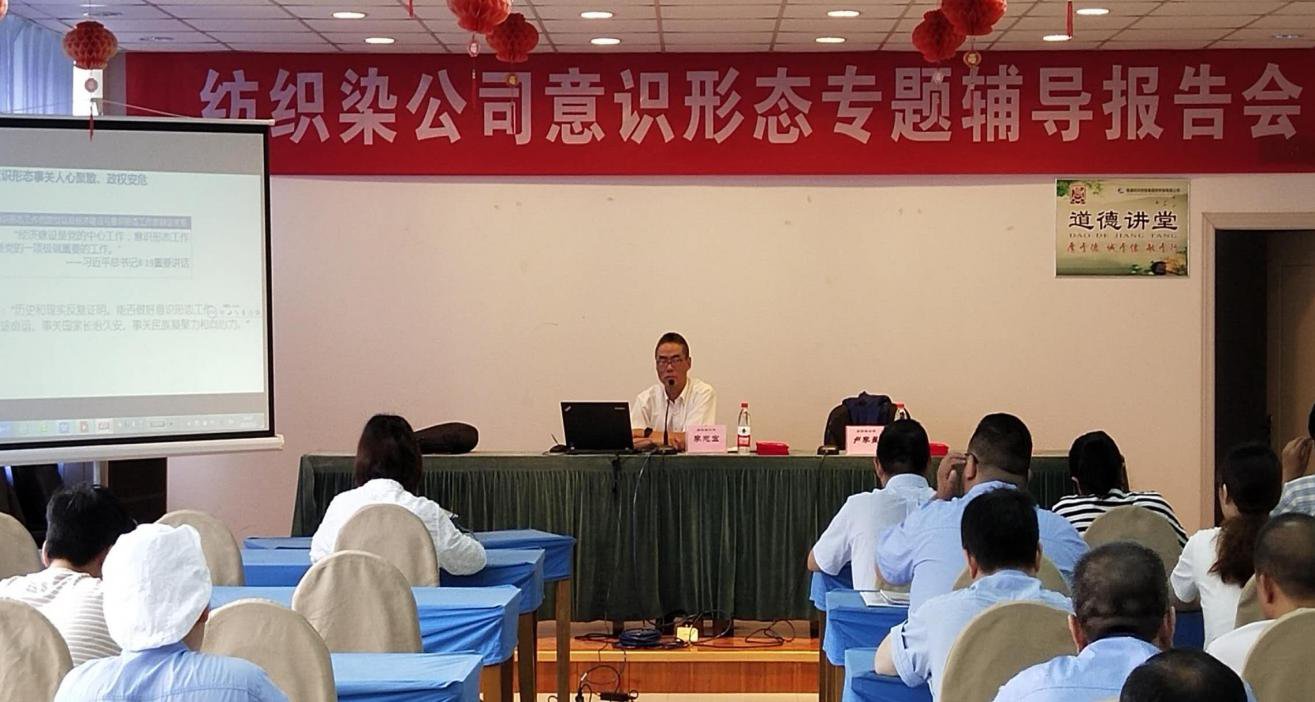 按照上级党组织精神,为进一步加强公司意识形态工作,提升全体党员、干部意识形态能力,7月3日下午,南通纺织控股集团纺织染有限公司党委书记、董事长李志宏就《如何提升党员、领导干部意识形态能力》,对全体党员、中层管理人员做了专题党课辅导。 李志宏的党课主要从为什么要重视意识形态能力,如何提升意识形态能力和提升意识形态能力的若干原则三个方面,就如何提升党员领导干部意识形态能力,向全体党员、中层干部作了详细全面的辅导,授课内容丰富,生动全面,对全体党员、干部今后重视意识形态工作,提升意识形态能力,开展好意识形态工作,都有很大的启发。