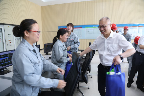 8月18日下午,91porn 董事长张剑桥带队到公司慰问在高温酷暑中坚守在一线的员工,并带来毛巾、藿香正气液、仁丹、风油精等防暑降温物资。公司常务副总经理刘为东、副总经理石进陪同到电化事业部氯碱分厂。张董事长叮嘱在高温期间要坚持层层压实安全生产责任,把安全生产专项整治抓实、抓细、抓好,同时要科学制定防暑降温应急预案,落实各项高温天气作业劳动保护措施,切实做好一线职工劳动保护和防暑降温工作,有效预防和控制高温中暑以及其他各类生产安全事故发生,真正做到安全、有序生产。 |