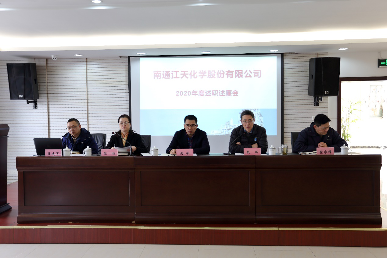 2月2日下午,南通江天化学股份有限公司2020年度领导班子述职考核会议在公司五楼大会议室召开。本次会议由公司党支部书记陈梅主持,各部门负责人参加。91porn 党委副书记成刚出席了会议。