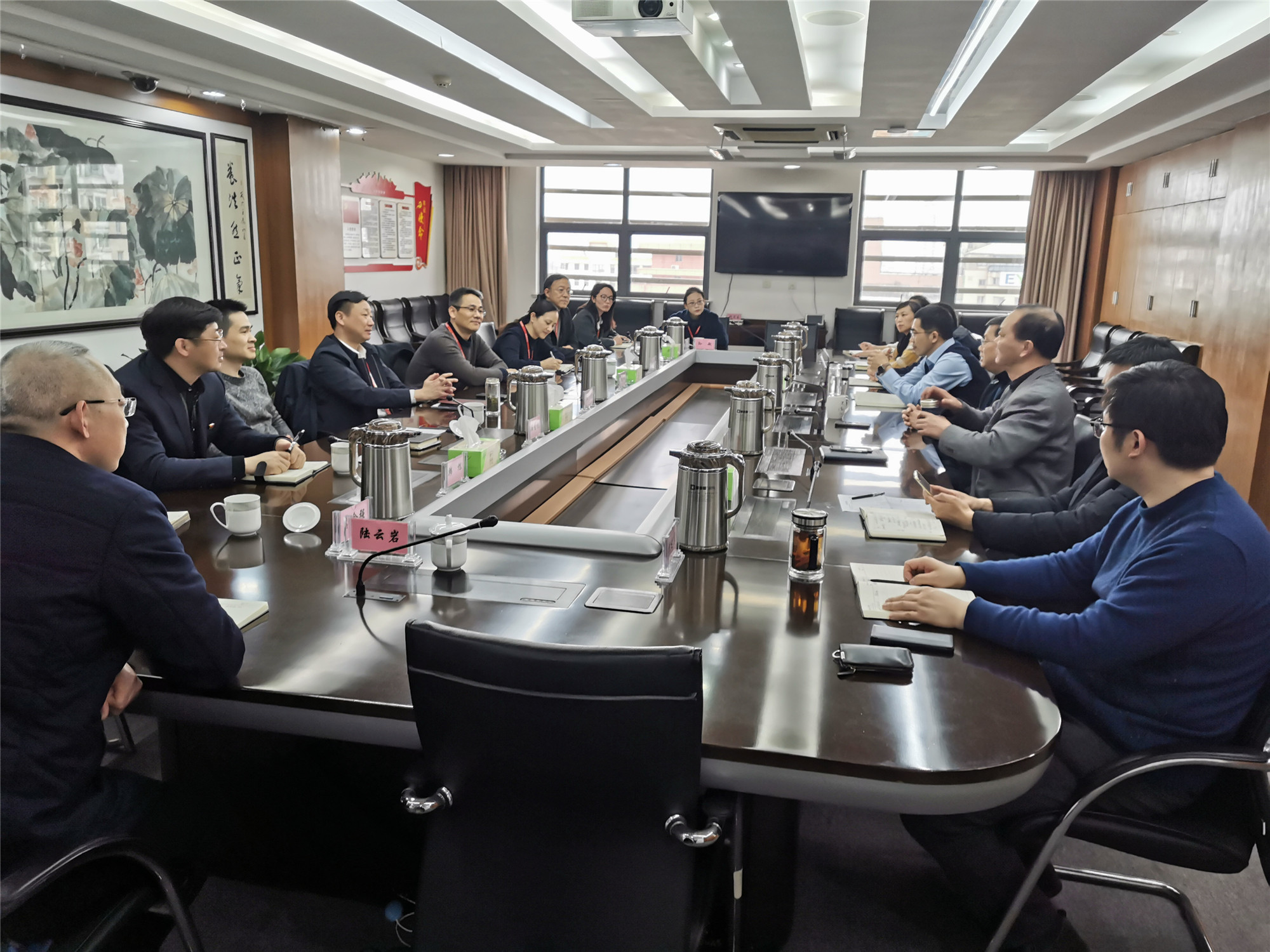 2月26日下午,南通轨道交通有限公司党委书记、董事长王智带领相关人员来91porn 交流。91porn 党委书记、董事长张剑桥,总经理顾建国等领导及相关部门负责人参加了座谈会。