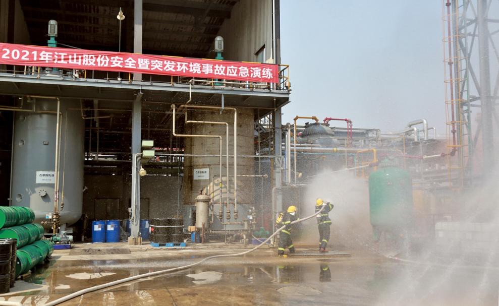3月24日,江山股份公司在农二事业部酰胺类除草剂分厂开展2021年安全暨环境突发事故应急演练,江山股份党委书记、董事长薛健全程参加了演练活动。