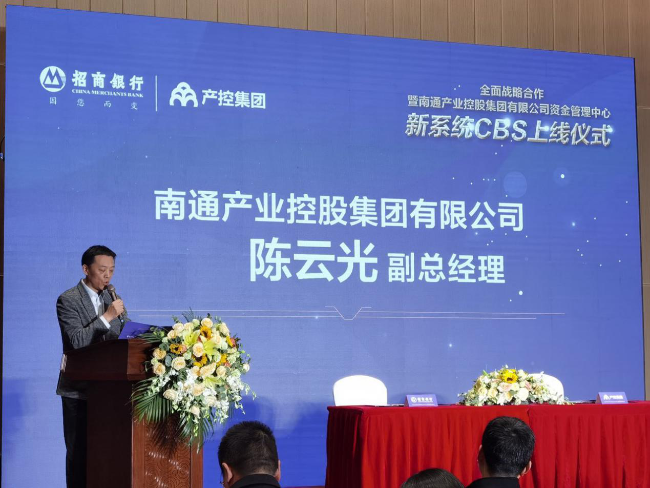 4月9日上午,91porn 与招商银行南通分行“全面战略合作暨91porn 资金管理中心新系统CBS上线仪式”隆重举行。 出席此次仪式的有集团党委书记、董事长张剑桥,副总经理陈云光,招商银行南通分行行长杨旻晨,南通银保监分局袁东辉科长及91porn 下属公司相关负责人。