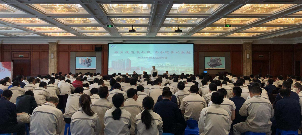 今年度生产任务异常繁重,车间面临的产能压力大,为鼓舞员工干劲斗志,立足岗位勇于攻坚克难,积极推进生产作业的落实,保质保量交付产品,江苏金通灵精密制造有限公司于5月8日下午在金通灵科技大楼附楼3楼礼堂召开了以“雄关漫道真如铁,而今迈步从头越”为主题的员工大会,由总经理来逢政主持,公司全体人员参加了本次大会。 大会上总助徐晓东、生产副总李贤坤、工艺副总韩栋先后就质量、生产、技术工艺方面的工作进行全面总结,并根据实际情对员工关注体系、工时调整等问题答疑解惑,同时也对后期各项工作提出要求。