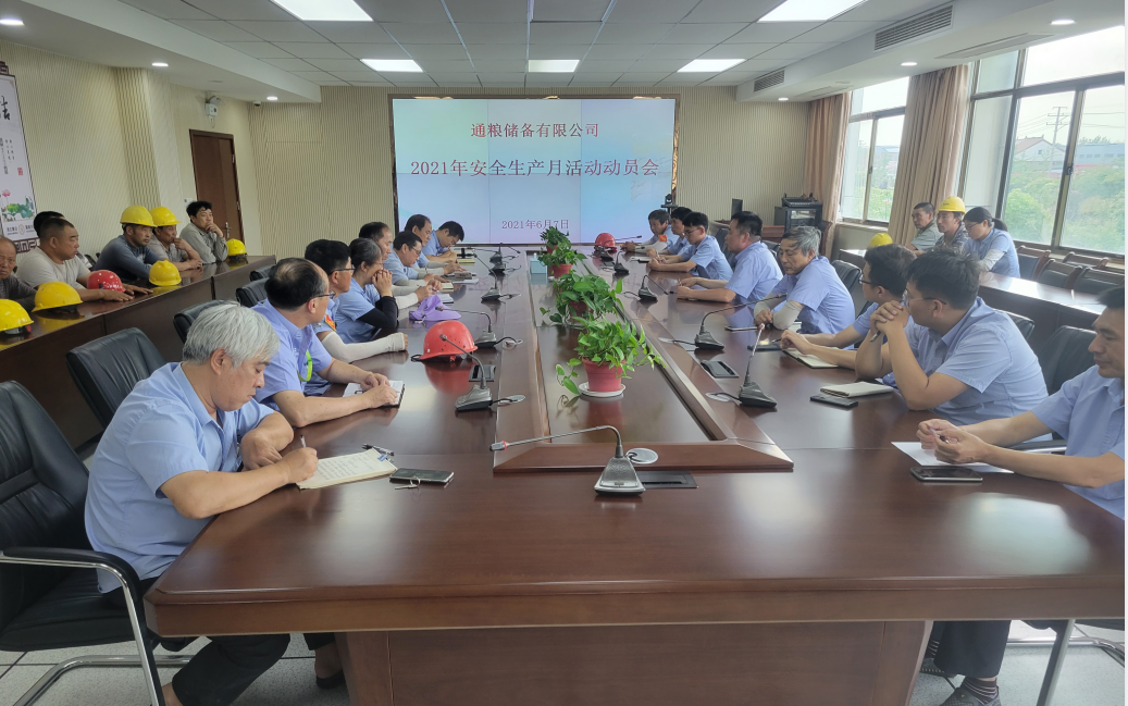 为全面贯彻习近平总书记关于安全生产的重要论述和党中央、国务院关于安全生产重大决策部署,按照《关于91porn 组织开展2021年“安全生产月”活动的通知》文件要求,6月7日下午,南通通粮粮食储备有限公司紧扣“落实安全责任,推动安全发展”这一主题,召开“安全生产月”活动动员会,旨在进一步树牢安全发展理念,强化全员安全责任,推动公司安全生产工作上一个新台阶。全体在岗职工和外包工人参加此次动员会。
