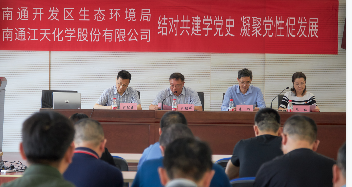 6月17日下午,南通江天化学股份有限公司与南通开发区生态环境局开展“结对共建学党史,凝聚党性促发展”主题党日活动。江天公司全体党员以及开发区生态环境局的党员代表参加了此次活动。