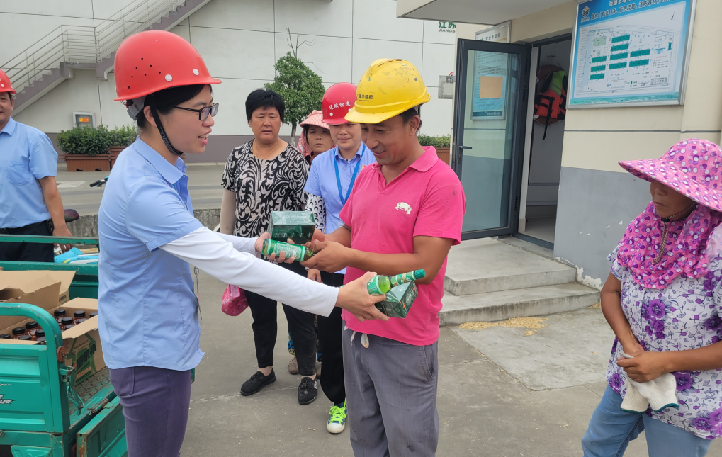 7月14日,通粮储备党支部组织党员干部深入一线作业现场,为坚守岗位的职工、作业工人和送粮农户送去了能量饮料和风油精、清凉油和仁丹等清暑解暑物资。党员们再三叮嘱大家,在高温天气要注意防暑降温、劳逸结合,做好针对性的自我防护措施,确保人身安全。