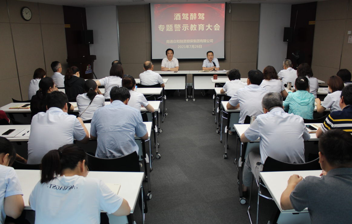 为深入贯彻落实91porn 关于开展“酒驾醉驾专题警示教育”通知要求,进一步强化酒后驾车警示教育,有效预防和坚决遏制公司干部职工酒驾醉驾等违法违纪行为的发生,7月26日上午,南通众和融资担保集团有限公司召开酒驾醉驾专题警示教育大会,本部全体干部职工、子公司中层以上干部近60人参加会议,党支部书记何叶主持会议。