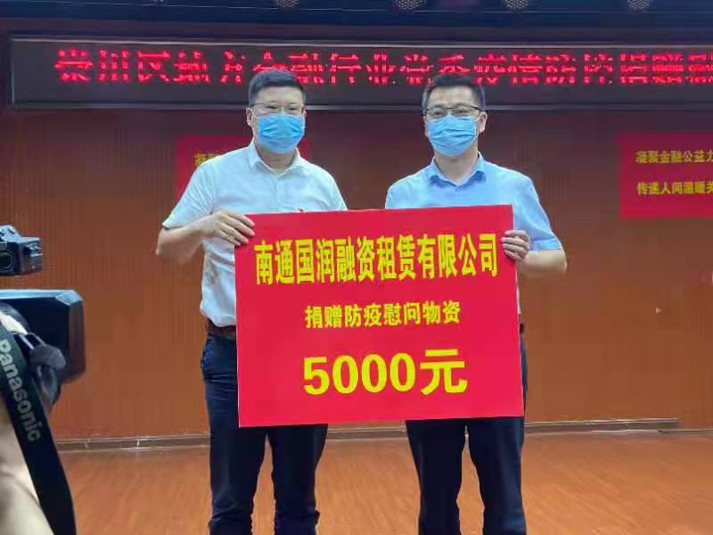 国润租赁作为南通市融资租赁行业的领军人物,第一时间响应,党支部副书记吴小兵同志代表公司向抗疫一线社区捐赠5000元防疫物资,助力于街道及社区的疫情防控工作。