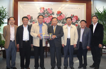 中海油总公司向南通市政府赠送纪念品,与会领导人员合影留念 |