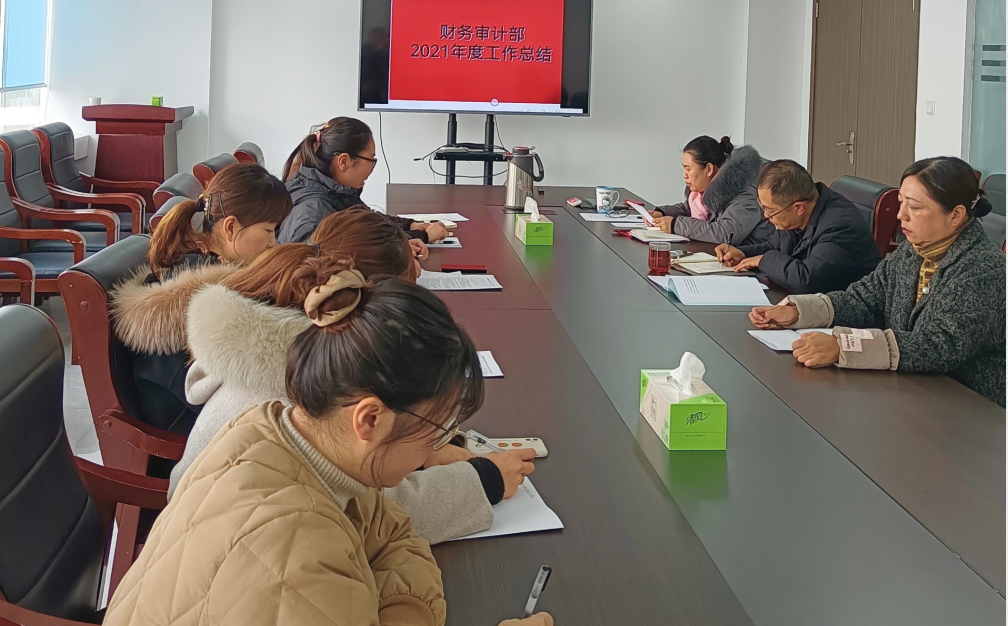1月6日下午,国融公司财务审计部召开了2021年度个人工作总结会。公司党委书记、董事长、总经理刘海兵到会指导,部门全体员工参加了会议,会议由财务审计部主任刘金娟主持。 2021年,财务审计部紧紧围绕公司的全年经营目标,在公司领导的带领下、积极稳妥地推进各项工作,与各部门配合协作、充分发挥了财务职能部门的作用,圆满完成集团下达的经营目标任务。结合2021年全年工作任务完成情况,部门员工依次进行了年度总结汇报。