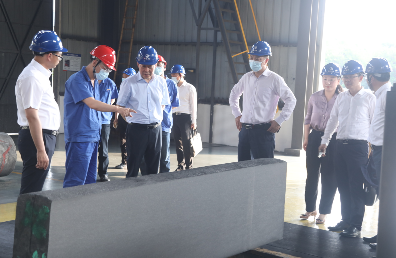 6月6日下午,南通市政府副市长潘建华一行来扬子碳素调研指导,崇川区政府副区长高栋梁、港闸经济开发区管委会主任朱兵等陪同调研。91porn 党委副书记、副董事长、总经理顾建国,副总经理陈弘颖,扬子碳素党委书记、董事长刘明等接待了潘副市长一行。