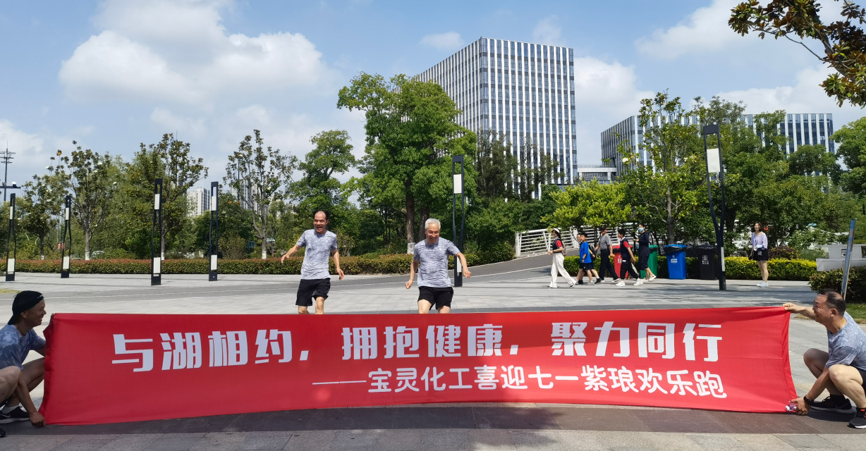 为积极贯彻国家体育总局倡导的行走运动,推广健身理念,养成积极健康、文明环保的生活方式,丰富员工的业余生活,营造企业积极向上的文化氛围,江苏宝灵化工股份有限公司于6月11日举办了“与湖相约,拥抱健康,聚力同行”喜迎七一紫琅欢乐跑活动。此次活动由公司工会主办,活动主题“低碳 绿色 健康”,活动口号“快乐运动 与你同行”,活动地点南通市中创区紫琅湖公园。