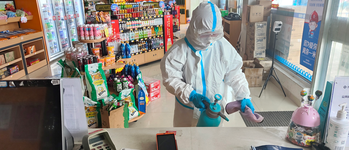 接到加油站上报后,南通公司高度重视,立即启动疫情防控应急预案。将相关情况及时上报了华东HSE部和零管部,并对南通销售、南通港口当日下午2:00至5:00去站加油站的员工进行了彻底排查,对防疫工作进行了再部署、再落实。要求各站时刻紧绷公司常态化疫情防控之弦,坚决克服麻痹思想、厌战情绪、侥幸心理、松劲心态。要严格执行公司各项防疫要求,全体员工须正确佩戴口罩上岗,同时提醒顾客佩戴口罩进入营业厅,做好顾客健康稽查工作。要做好加油站场所消杀工作,并做好台账记录。零管部临时负责人季庆杰和小额配送岗徐冬祥主动请缨,积极配合街道综合执法局进行夜间值守,在南通地区最高温36℃的情况下,在狭小的车内度过了难忘的一夜。 通盛站是南通公司标杆站,更是万吨站,停业一天,对公司的销量利润都有不小的影响。疫情防控小组成员鲍杨做好后勤保障工作,积极与市防疫指挥中心协调、沟通。7月9日中午,南通公司接到通知,通盛站可在自行全面消杀后,恢复营业,大家都松了一口气。接到通知后,非油岗魏菁菁带领通盛站值守的员工开始对通盛站进行了两个小时的全面消杀。街道综合执法局全程监督消杀工作,消杀完成后,执法局拆除了油站临时封控警戒线并组织撤离。