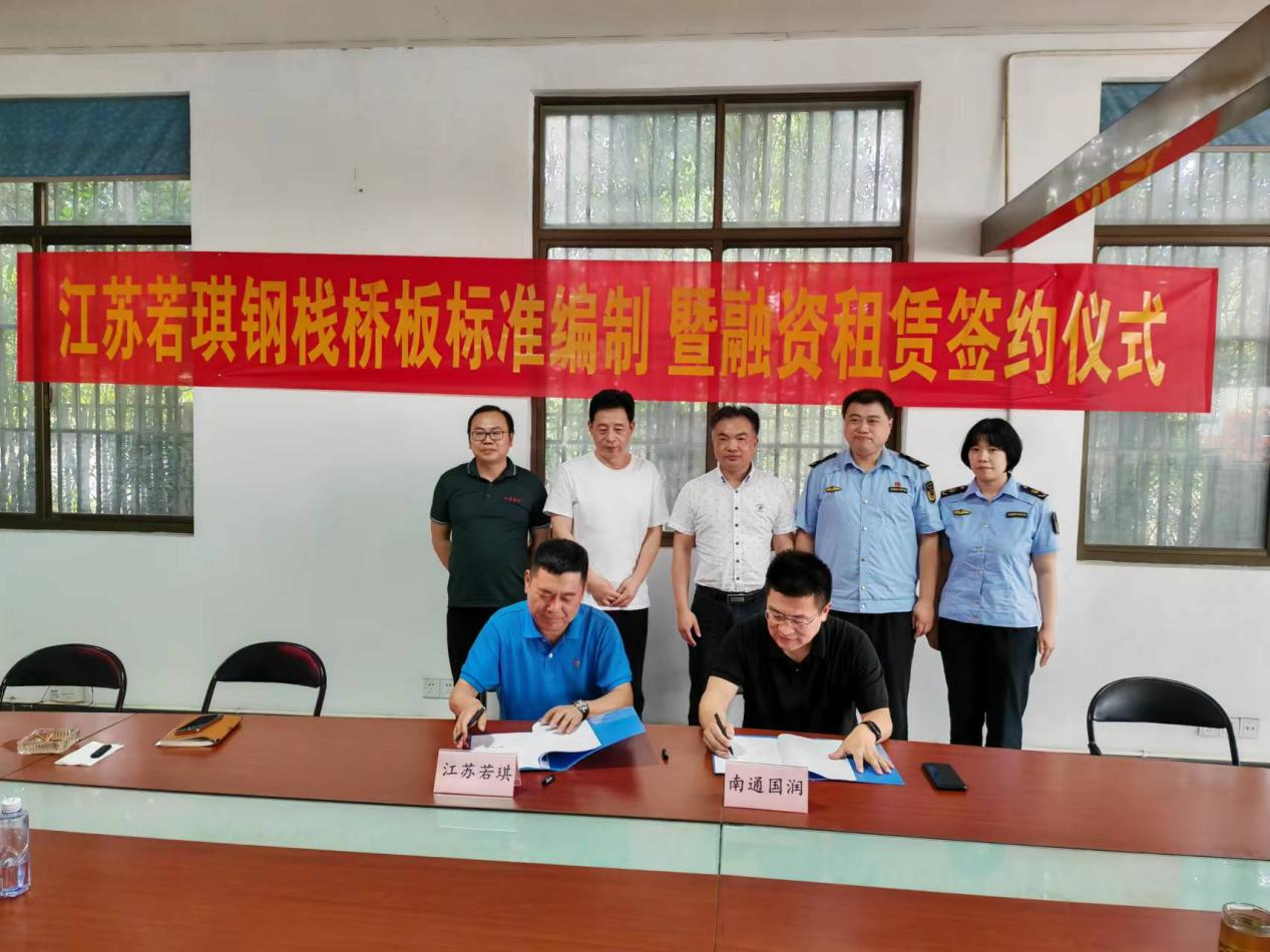 6月29日下午,南通国润融资租赁有限公司与江苏若琪建筑产业有限公司融资租赁战略合作签约仪式在江苏若琪公司举行。通州区金融局副局长周宇春、通州区科技局副主任陆军、平潮镇副镇长浦晓东、平潮镇市场监督管理局赵小兵、通州区市监局科长施羽佳、国润租赁董事长陈大鹏及江苏若琪董事长蒋明青出席了签约仪式。
