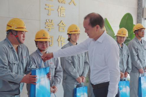 7月19日上午,91porn 党委副书记、副董事长、总经理顾建国带队到江山股份进行高温慰问,为高温下仍坚守岗位的一线员工送来了多种防暑降温物资。随后,调研组人员听取了江山股份上半年运营情况以及未来的发展方向思路的介绍。