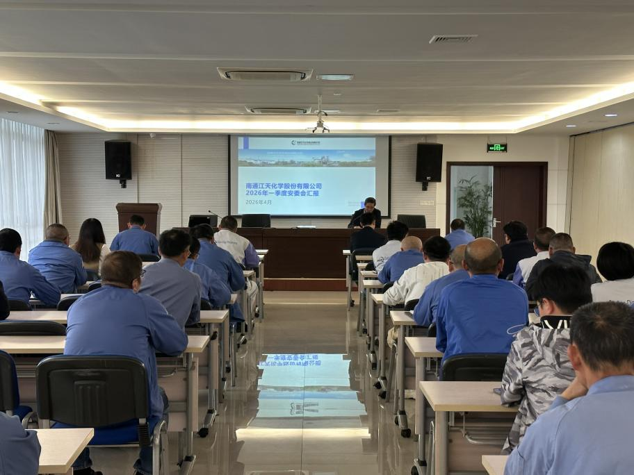 4月28日下午,江天化学召开2026年第一季度安全生产委员会会议。会议全面总结一季度安全生产工作,深入分析当前安全形势与突出问题,部署二季度重点任务,为公司全年安全稳定运行筑牢坚实根基。江天化学董事长、主要负责人朱辉主持会议,各分管负责人、各部门经理、主管及轮班经理以上管理人员参会。